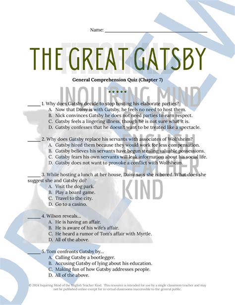 Read Online great gatsby chapters question and answer packet iBooks Google eBookstore